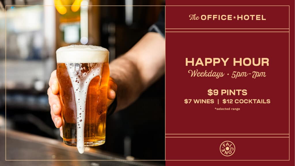 $7 schooners every Saturday from 1:00 pm to 3:00 pm at The Office Hotel.